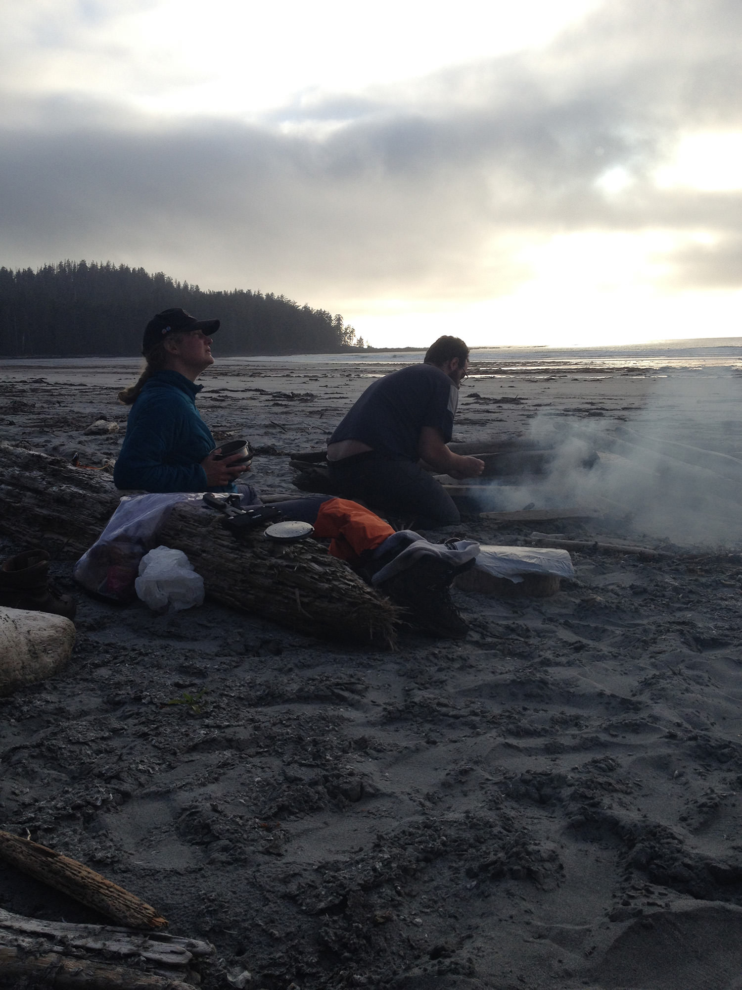Blessed with beautiful weather and a low tide, we spent most of the morning checking out the beaches, stacks and tide pools at San Josef Bay. After a few hours of beach exploring we made our trek to Nels Bight which is where we made camp for the remainder of the nights. We stopped for lunch at Fishermans River (halfway). The trail was is great shape, not much mud and we followed a bear in. Camp was made and we were able to experience a great sunset and still great weather. 18 km