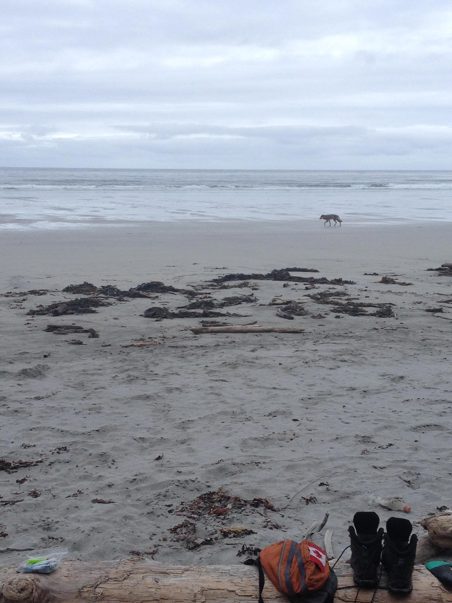 Early start. Wolf on the beach just before we left. We kept a steady pace on the way back. We got to experience the entire weekend with no rain, and lots of sun. 18km