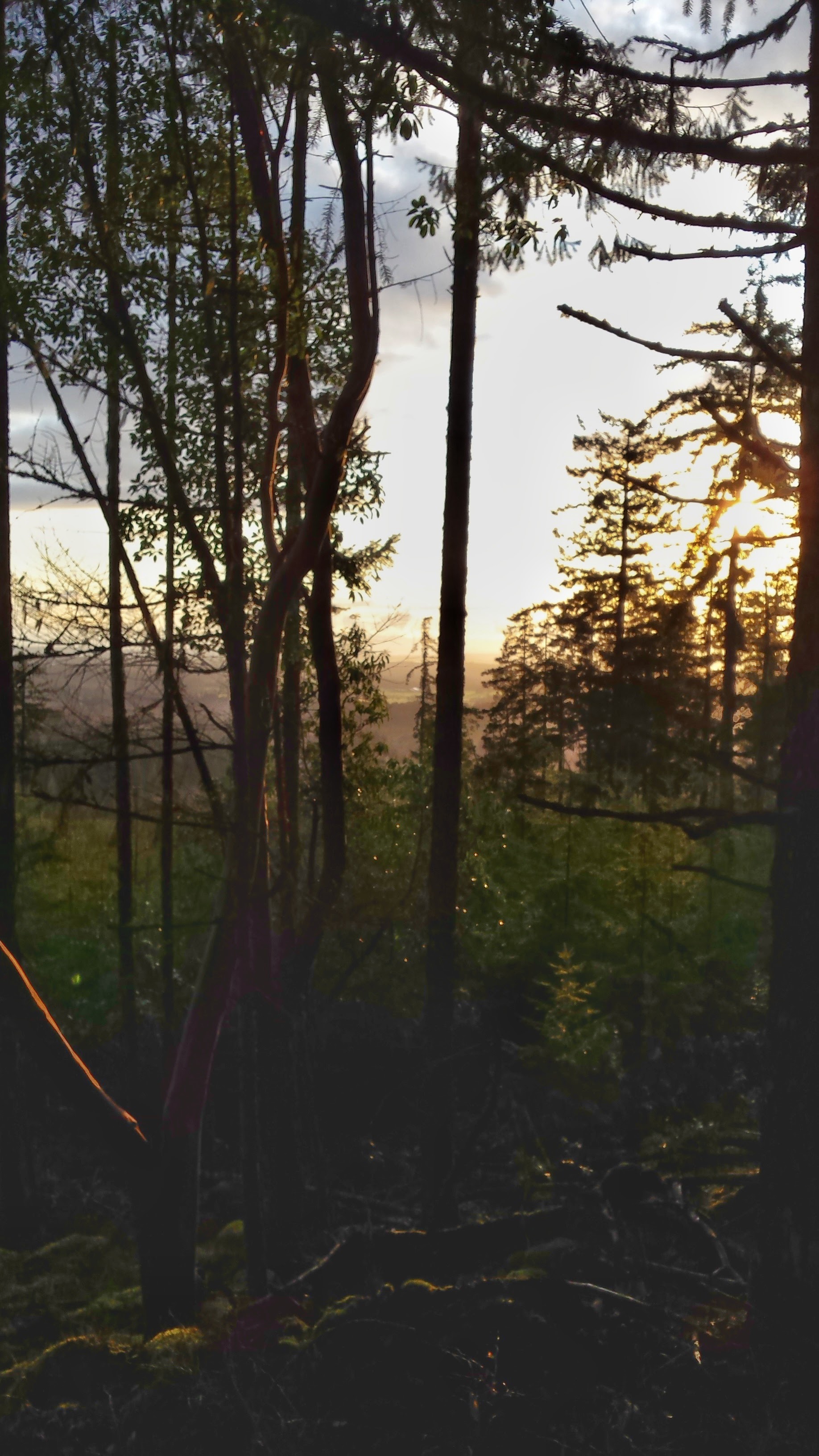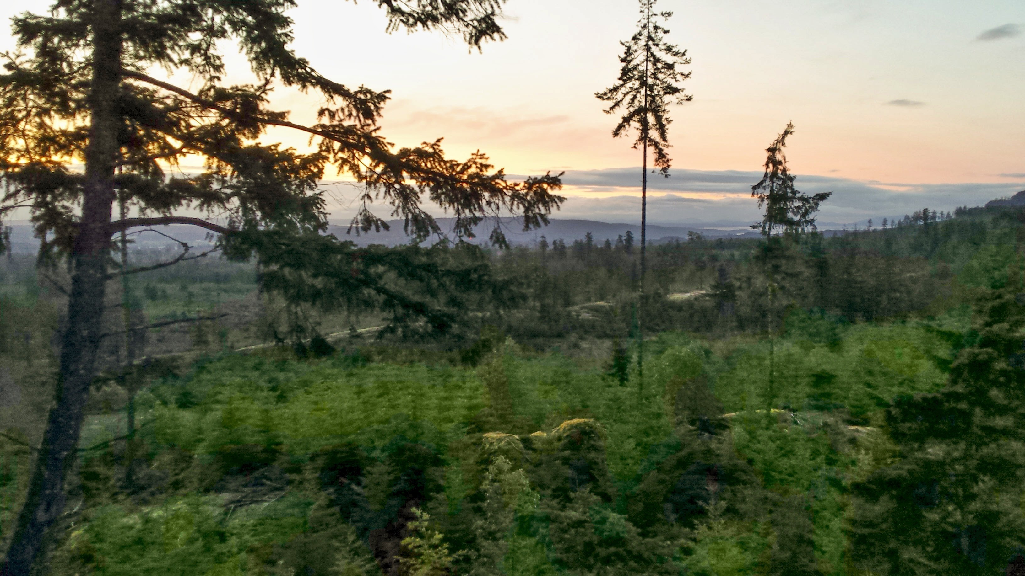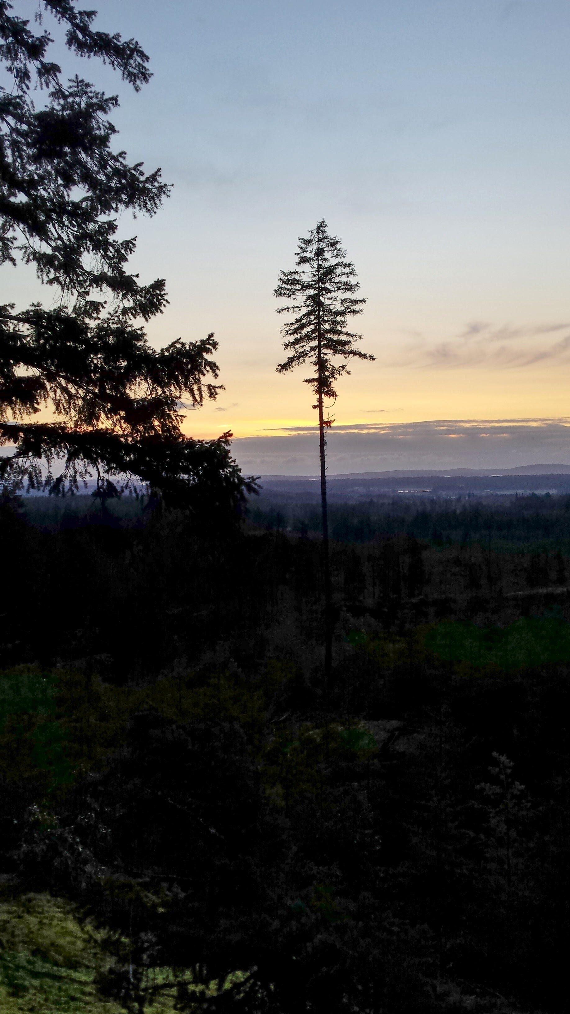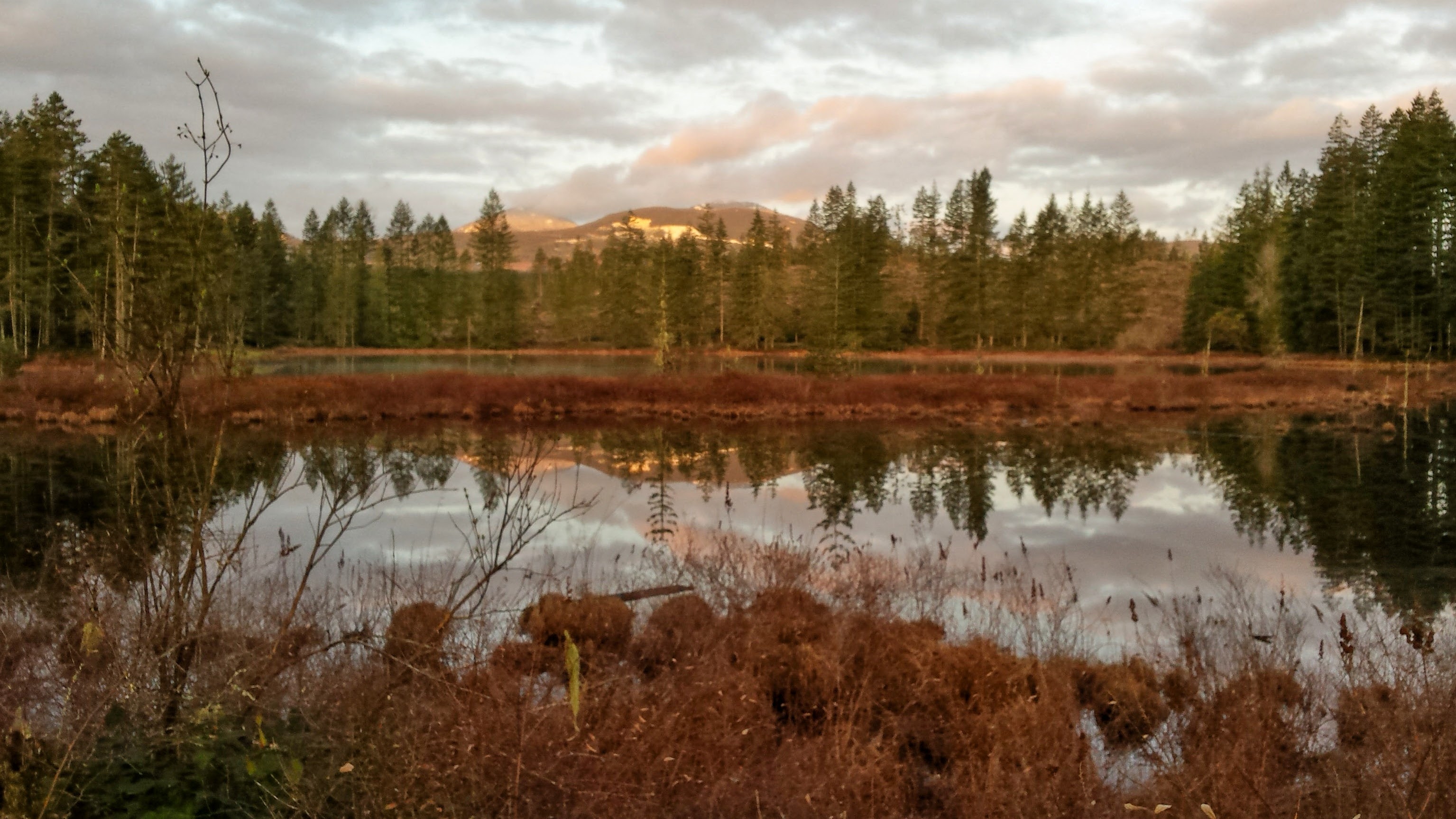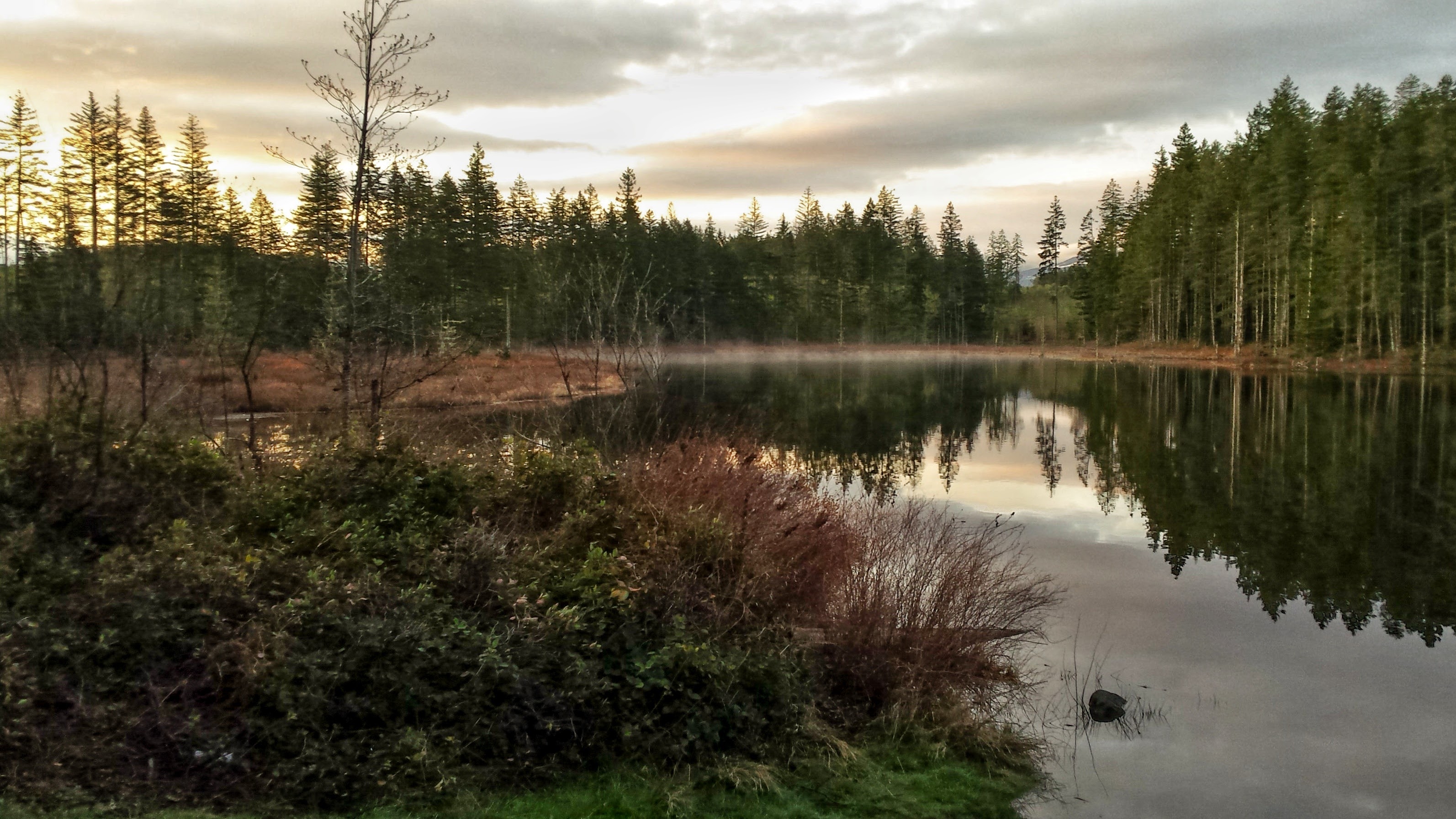 The moon was shining, and the pre-dawn night was just beginning to brighten when we set out under the light of headlamps on the White Pine trail, just south of the Nanaimo River. Within 20 minutes, the twilight had brightened enough that headlamps were unnecessary, despite the disappearance of the moon behind a bank of cloud.