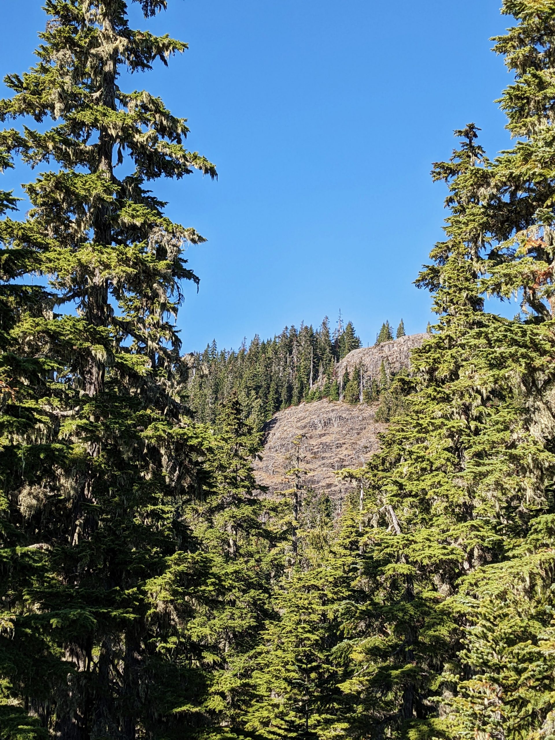 We paused at the lookout point by Lady Lake to scope terrain for a possible route out, and decided it was likely a nope. We did, however, discover a section of the old Dove Creek trail below the current main trail.