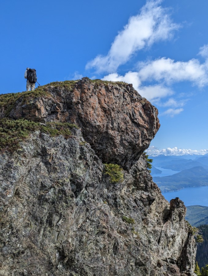 Once we got there we had to scramble up a short section. It took us a bit to get up and down as it was easy to kick rocks down onto the others. We spent a brief time on the second summit before returning to the ridge.