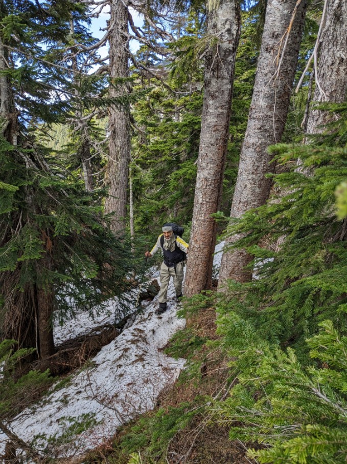 We got to a nice viewpoint of Big Tree Mountain, our second objective, and decided we wouldn’t have enough time to make it there. We had a late lunch and made our way off the ridge, through the slash and back to the vehicle.