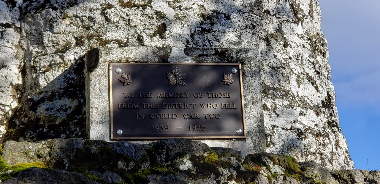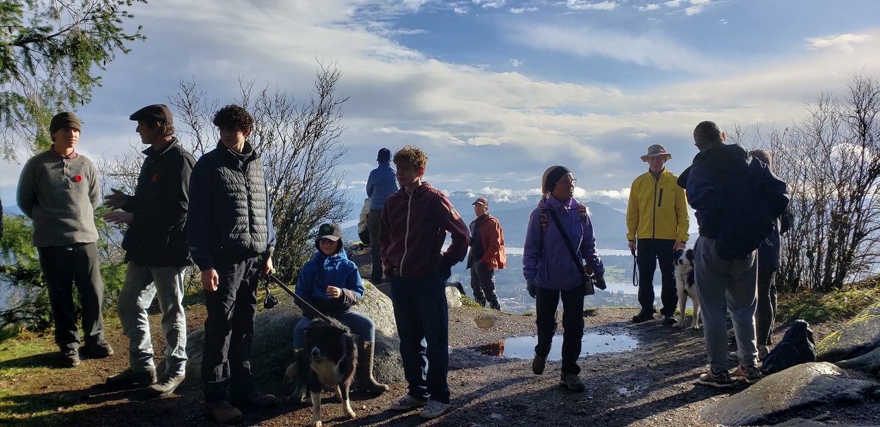 For 21 years the Cowichan Hikers have been doing a Remembrance Day Service at the cairn on Mt. Prevost, on Remembrance Day. I invited the Ramblers to join. Starting with a welcome as we watched 6 planes flying below, it was very moving. We followed with the trumpet recording of the The Last Post at 11am. We had 2 minutes of silence followed by trumpet playing the Reveille. Flanders Fields was read followed by a Prayer.