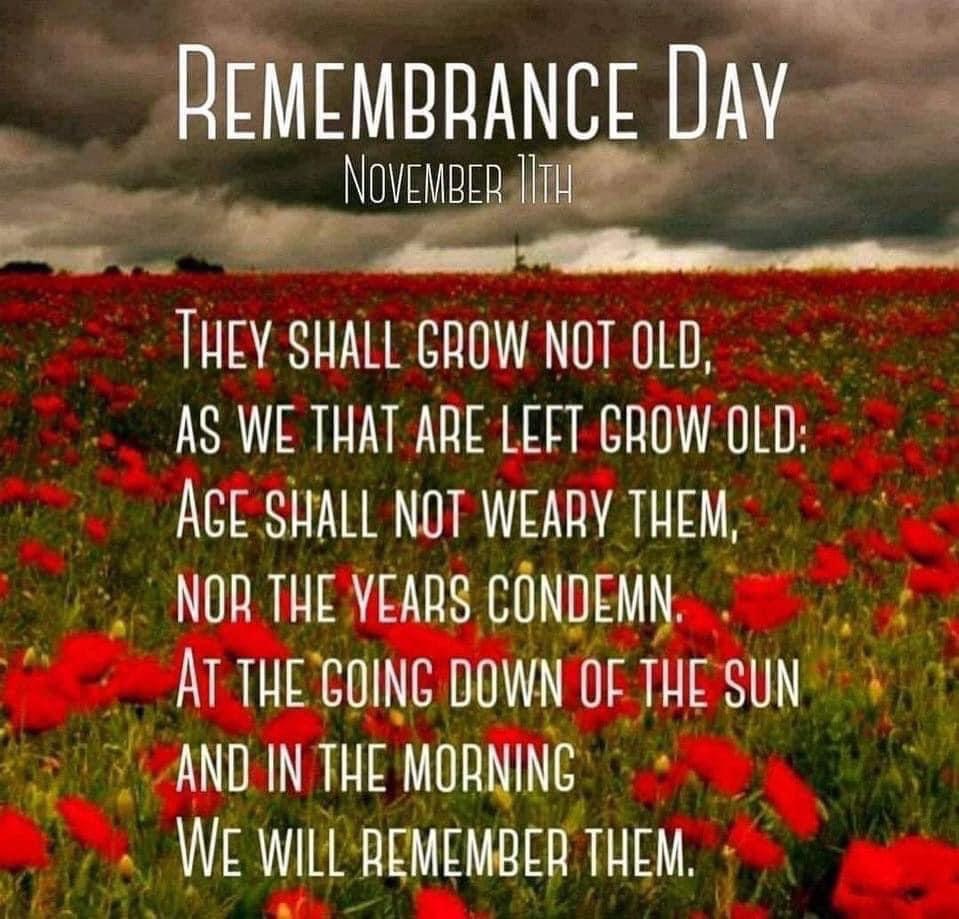 They shall not grow old, as we that are left grow old: Age shall not weary them, nor the years condemn. At the going down of the sun and in the morning we will remember them. We then sang O Canada.