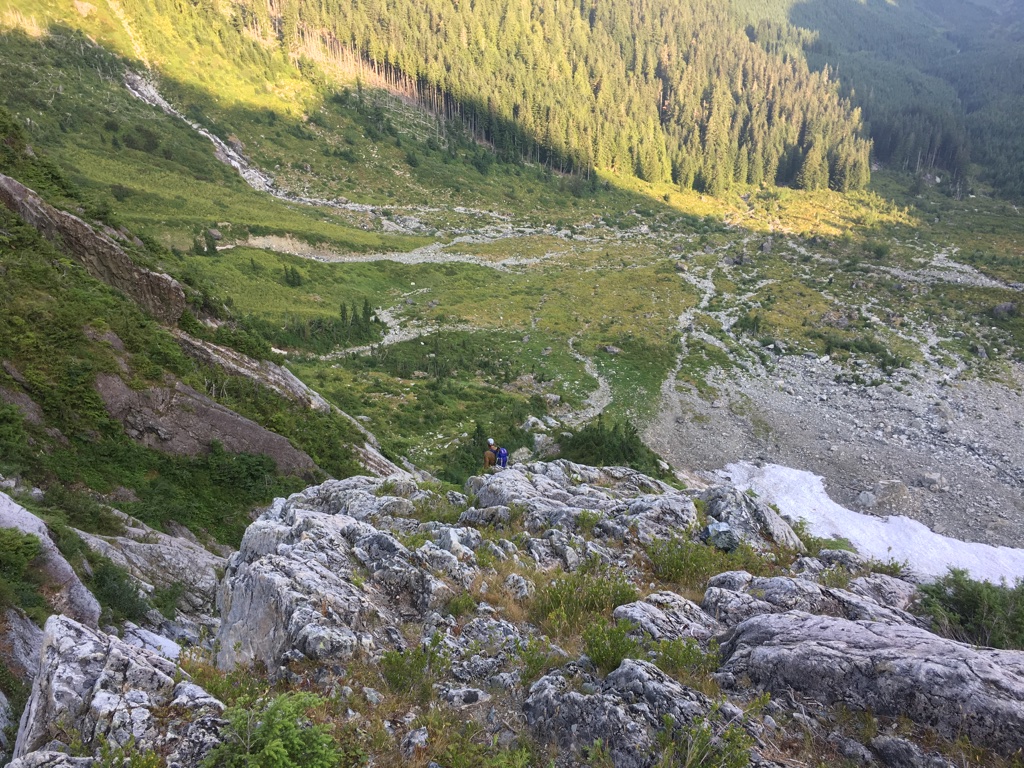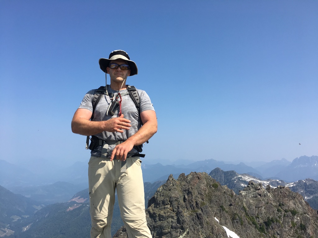 7 IMR members, great day out. Very varied terrain: old logging road, thick bush (avalanche basin), rock scrambling & climbing (to low 5th), veggie climbing, scree fields, snowfields, ridge climb, epic exposed jump to a 4’x4′ pinnacle; 12 hours round trip.